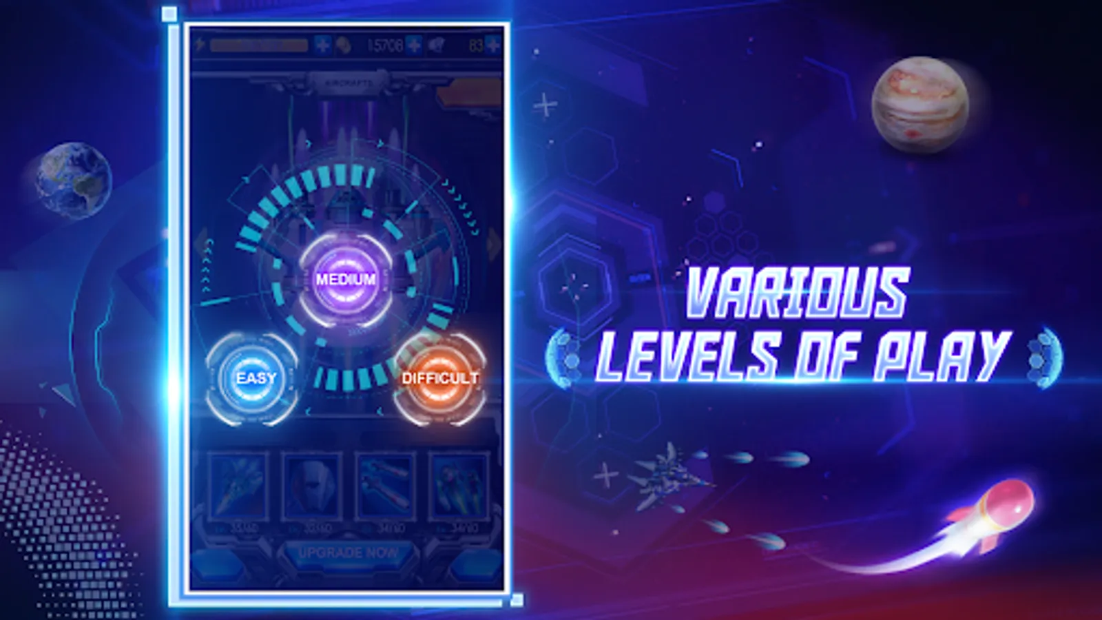 Strikers 1945: Sky Wars Game takes you back to 1945, where you join the last war to save the world. Developed by Kien Media, this arcade game features the latest fighter aircraft from F-22 to F-117 stealth bombers. With simple controls that don't require a tutorial, various difficulty levels cater to beginners and advanced players alike. The game is designed to maximize the arcade gaming feel with thrilling fun.
