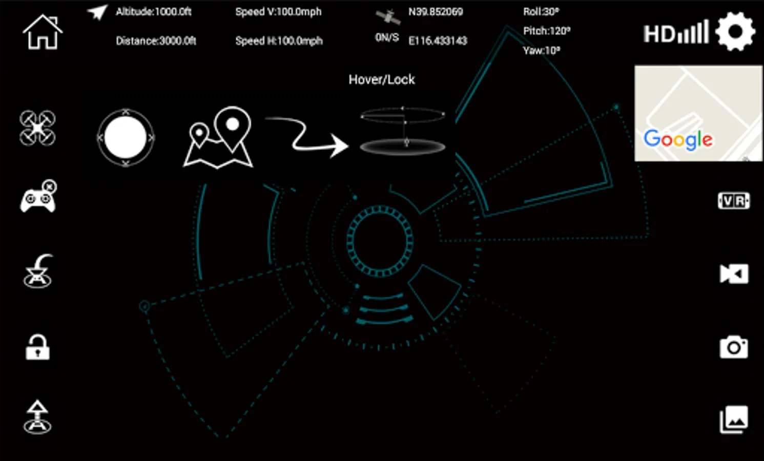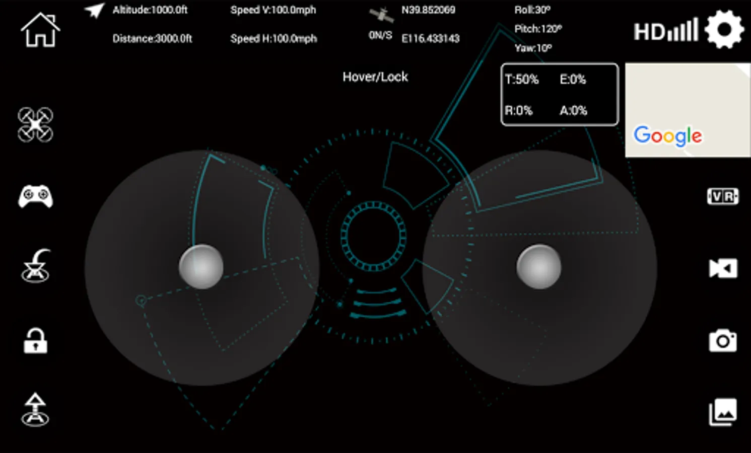 2.Display the real-time video which taken by the camera on the aircraft,video data transmitted via 2.4G WiFi protocol.