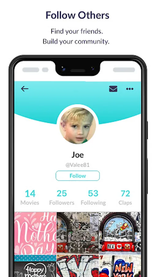 Create or Join Collaborative Video Projects with friends or other Social Media Users who you can follow.