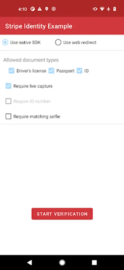 An example app for Stripe Identity SDK, themed in red