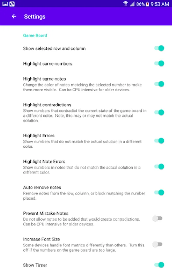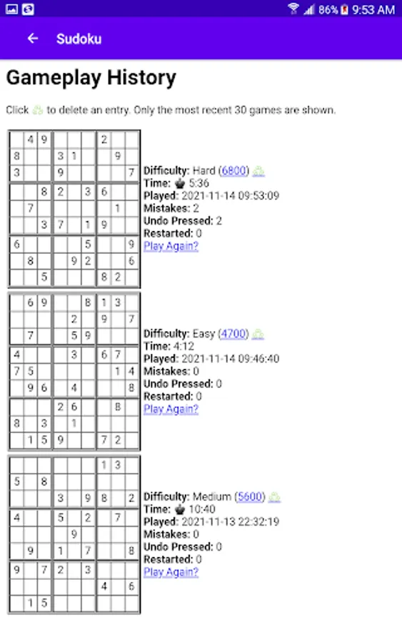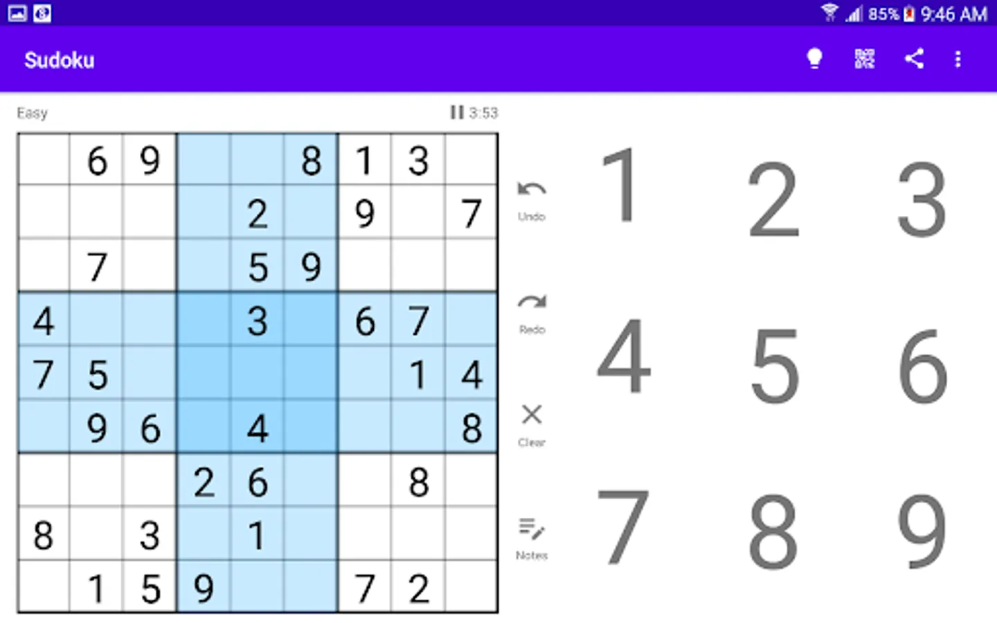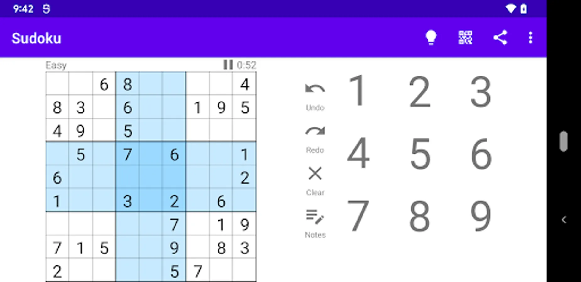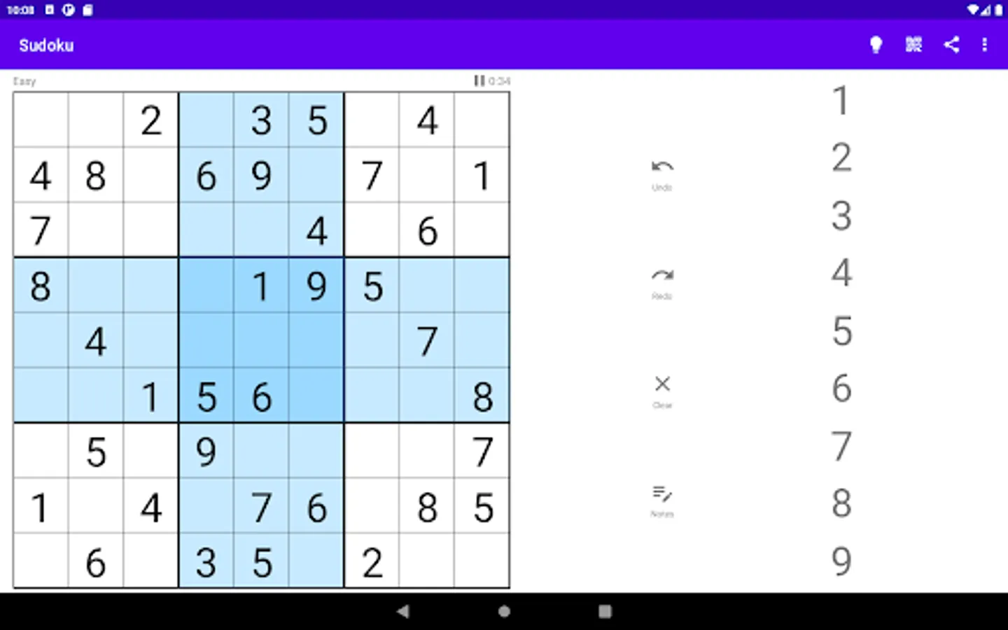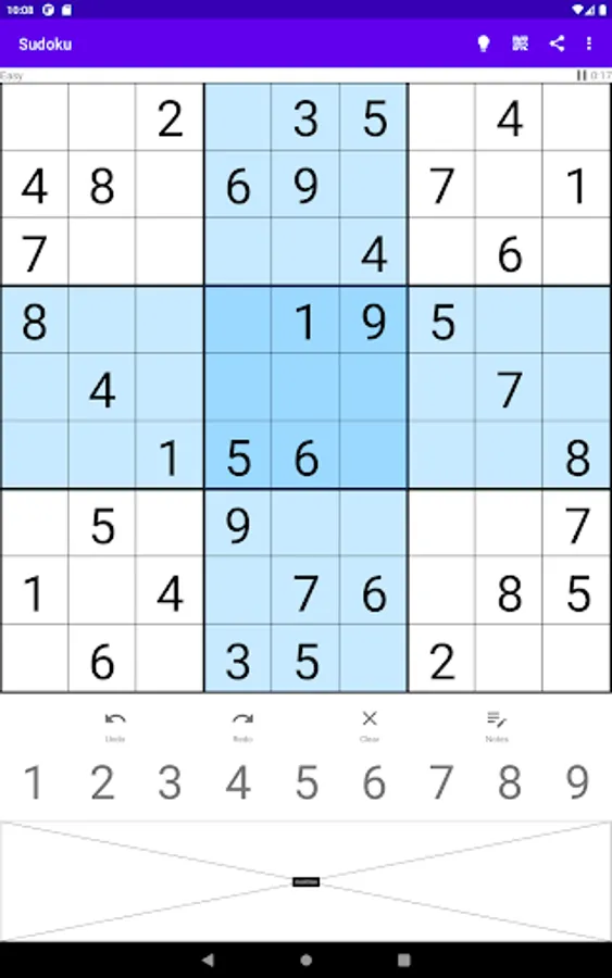 This is my first Android app so I wanted something simple that didn't require a lot of effort to create. Was I ever wrong. Beyond generating puzzles with a guaranteed single solution, puzzles should be made intentionally easy or difficult and that is where the rabbit hole opens. The first step to creating a good puzzle is to solve it and the techniques required to reach the solution determine the difficulty. There are about a dozen base techniques ranging from fairly obvious to complex and time-consuming to work through. This app implements the first seven and can already produce some maddening puzzles. Easy puzzles can be solved without a tremendous amount of effort as they should. Medium and Hard puzzles ratchet up the difficulty and I have not yet completed an Expert puzzle without guessing. Guessing is not one of the implemented techniques!