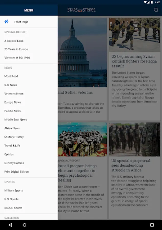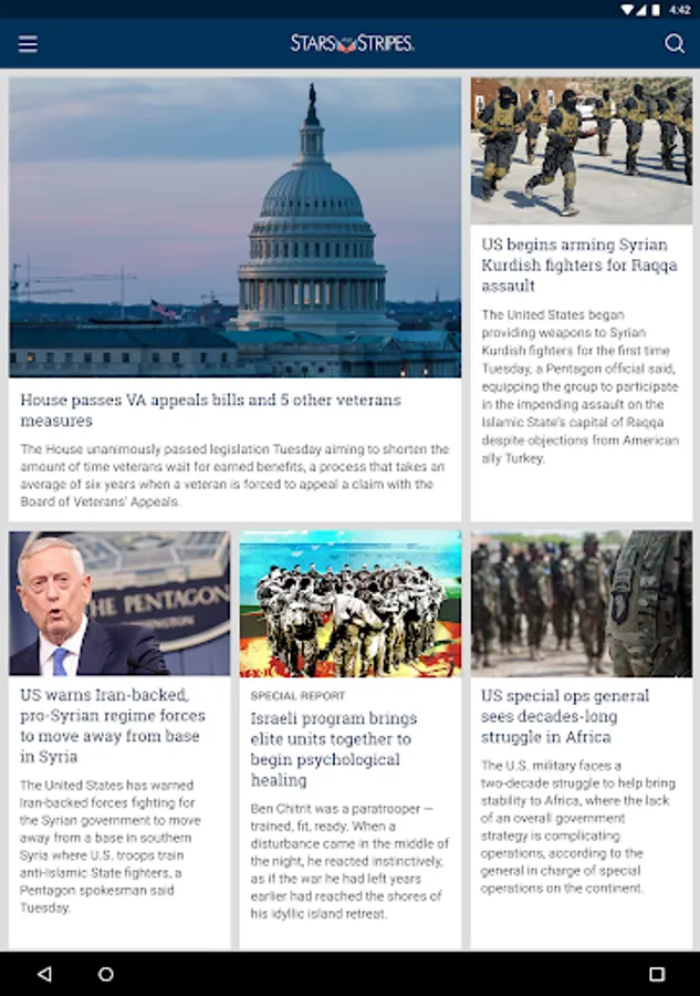 • Full Stars and Stripes news coverage with unique, independent reporting from Stars and Stripes journalists located around the world and embedded with our troops.
