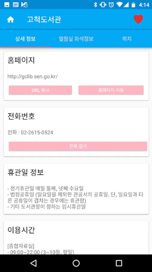 - 전국 공공도서관, 대학도서관의 도서관 정보 (전화번호, 주소, 휴관일, 이용시간, 홈페이지)