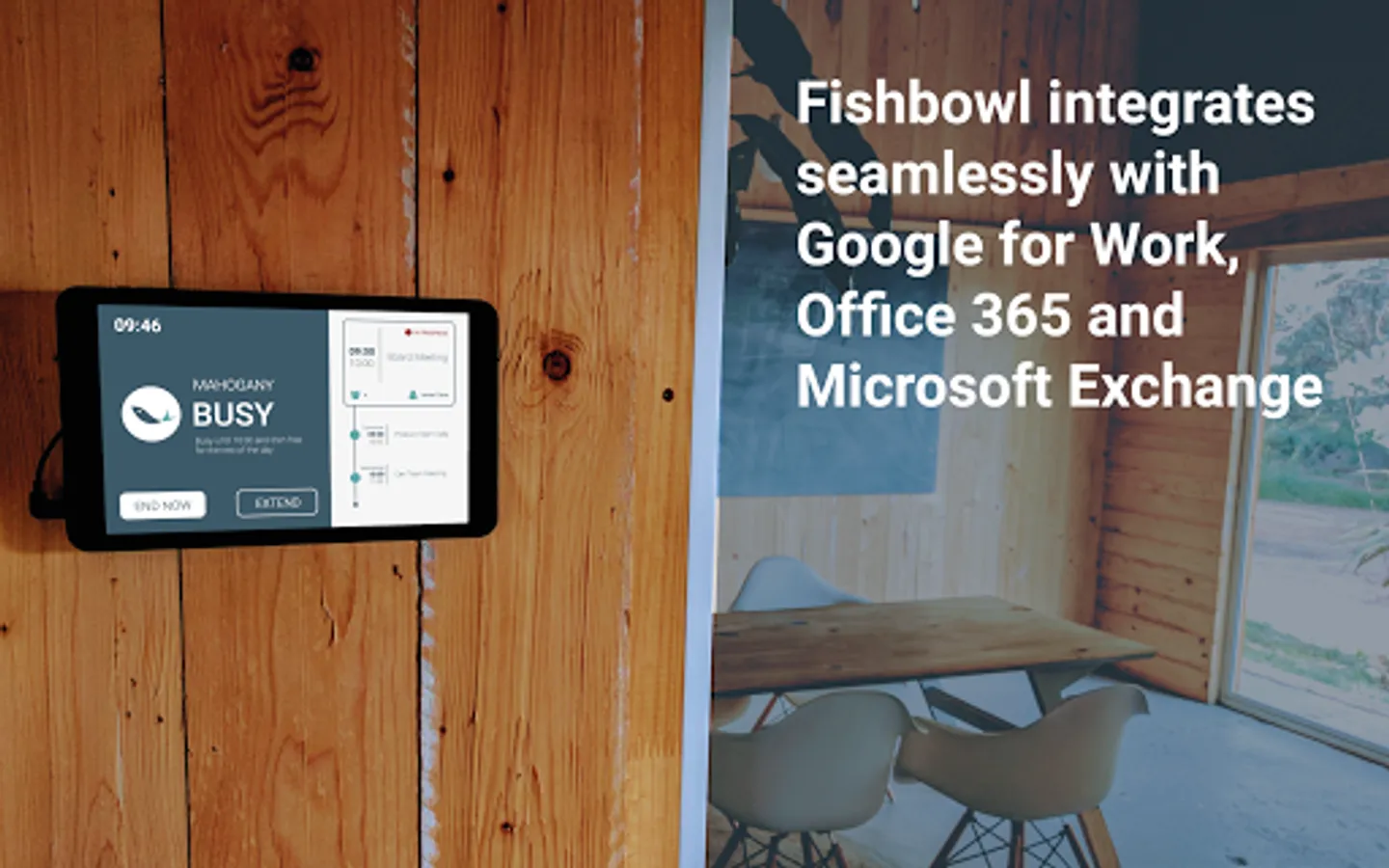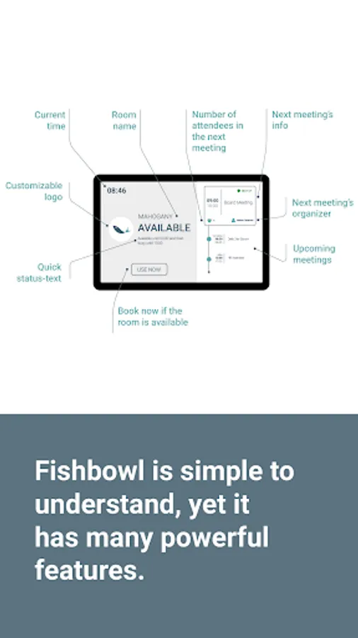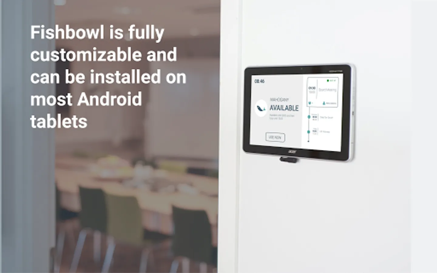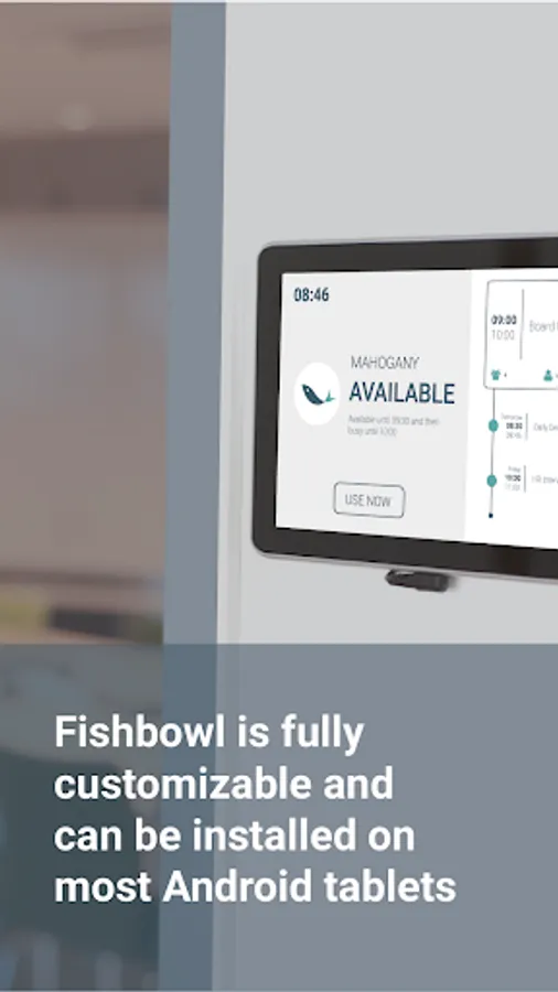 Install Fishbowl on tablets outside your meeting rooms and benefit from having the room status and availability clearly visible.