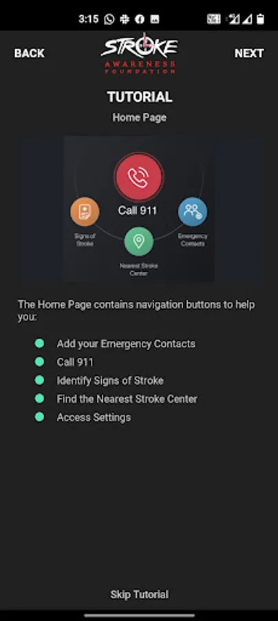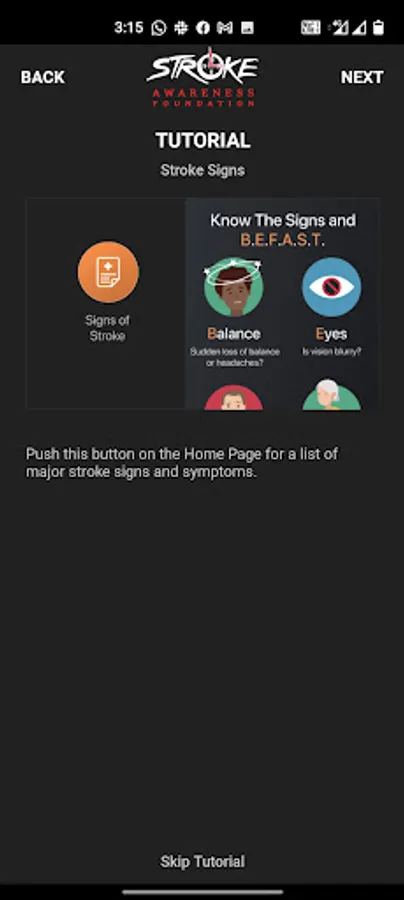 This app shows the signs of a stroke in simple easy graphics. If you or someone else is having a stroke this app will call 911 directly and instantly send text messages to as many as 3 emergency contacts notifying them that you are having a medical emergency and calling 911.