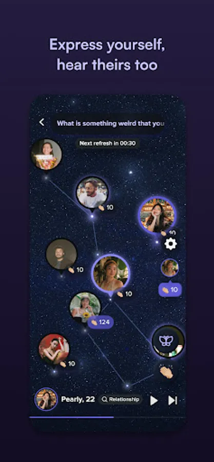 • Voice is an additional layer to vibe check a person. Hear the voices of the people you’re viewing with the voice prompts. There is no one voice for all, only one matches your liking.