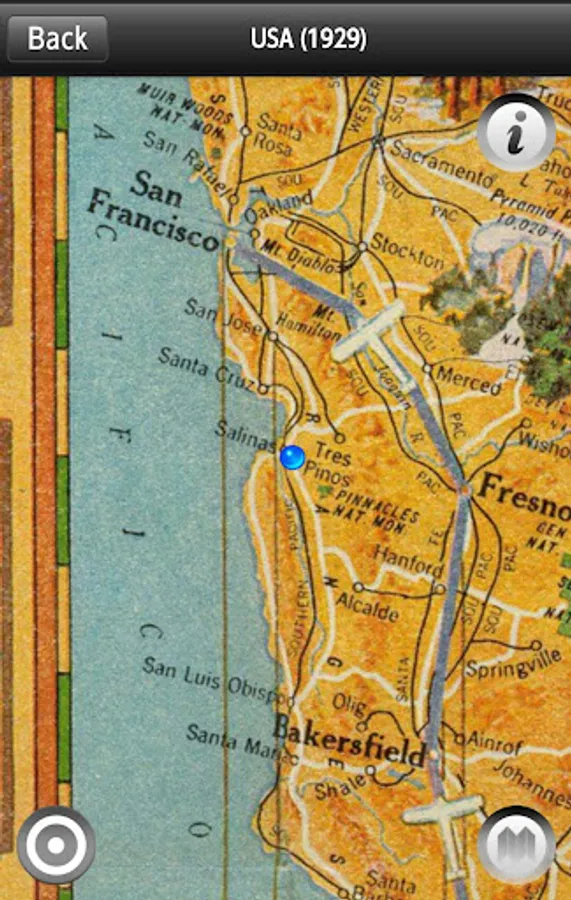 The user's current location is shown on over 30 high resolution maps from all over the world. Because we synchronize every single illustrated map to the current maps by hand, we are able to supply you with the most accurate location possible. To make it easy to compare your location on the Historic Maps and the current maps, you can switch between those maps without leaving the app.