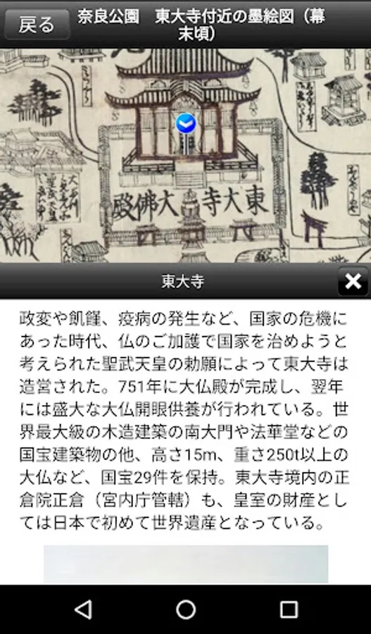 「奈良絵図紀行」は、いにしえの地図に、貴方の現在地を表示し、奈良の風情を感じ案内してくれます。