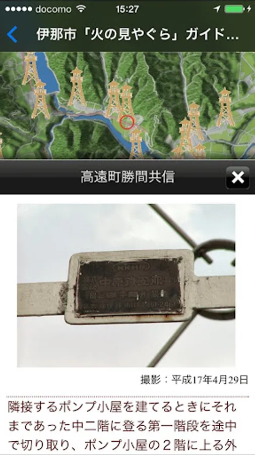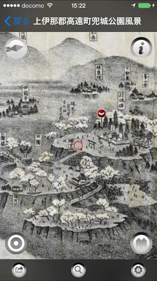 高遠ぶらりでは、長野県伊那市高遠地区や伊那谷の古地図の上に現在地を表示し、標準地図と切り替えてみることができます。