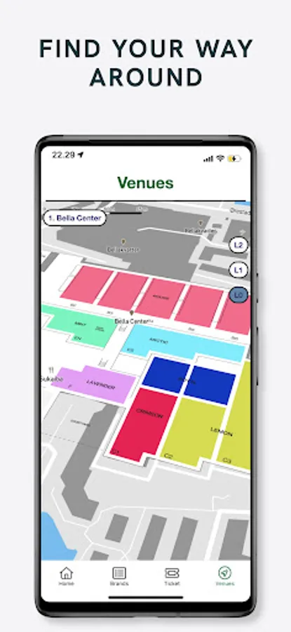 Tap on search field and write or select a Brand name to find their location within the venue.