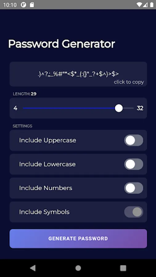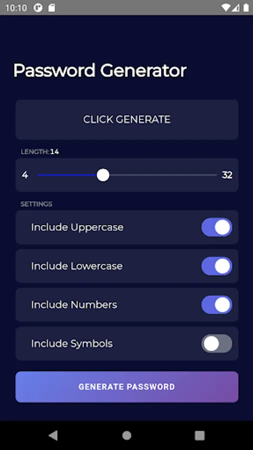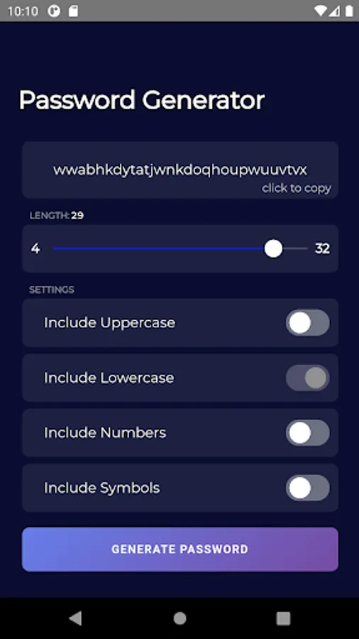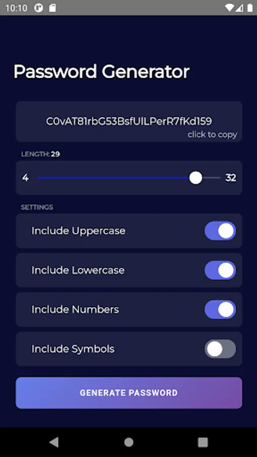 Click the "Generate" button. The program will select for you 10 options for strong passwords, from which you can choose the one you like.