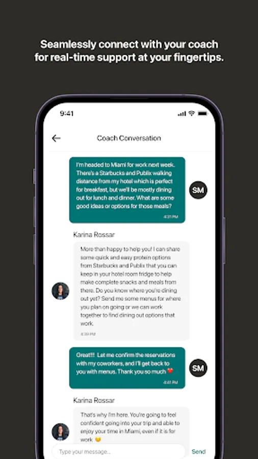 • Message your coach from anywhere at anytime