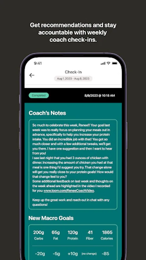 • Get the accountability you need! Check-in with your coach weekly and receive feedback