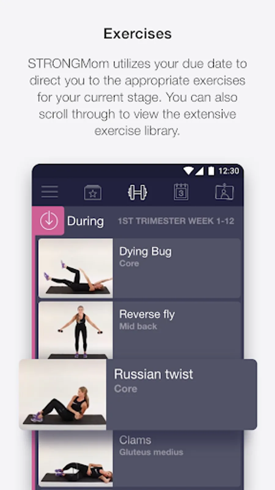 The app uses your due date, ensuring that the exercises are safe and effective each step of the
