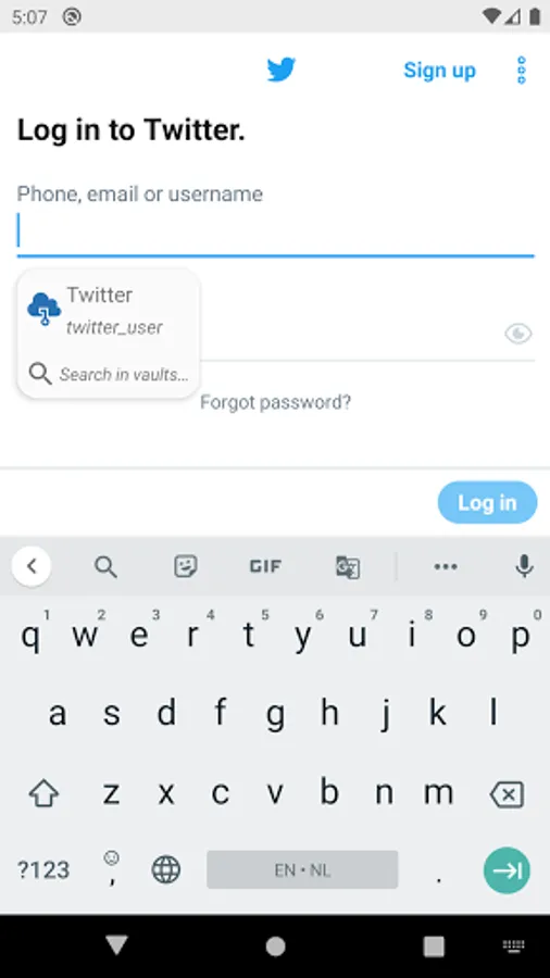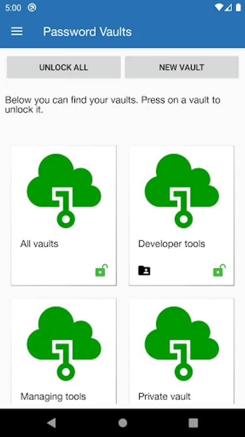 Opening a vault is performed by using the Ubiqu Authenticate app (REQUIRED, found here: https://play.google.com/store/apps/details?id=com.ubiqu.eid or https://itunes.apple.com/nl/app/authenticate/id934349819) as 2-Factor Authentication.