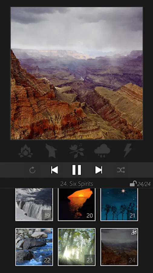 The app contains 24 relaxing tribal songs and animated landscapes of North and South America. Also, these songs have traditional indian flute and drum sounds.