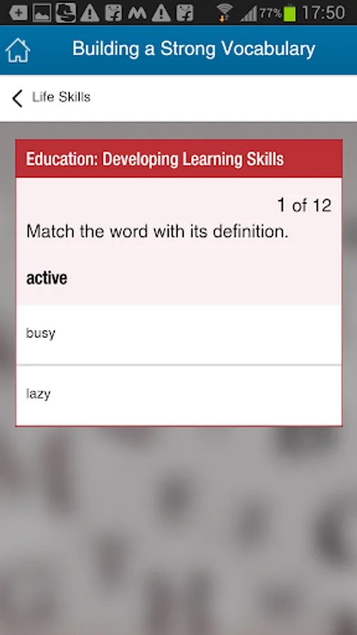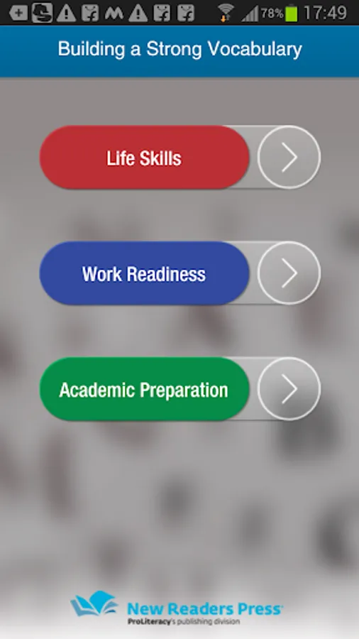 Practice matching words with their definitions and improve your vocabulary. Building a Strong Vocabulary is a 3-book series from New Readers Press. This app will help you learn new words from the books.