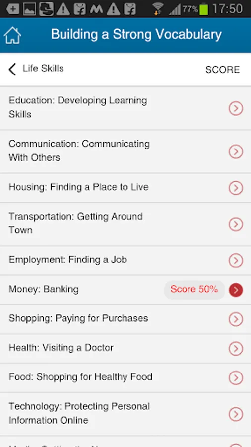 • Life Skills includes vocabulary for everyday topics, such as education, money, shopping, technology, and health.