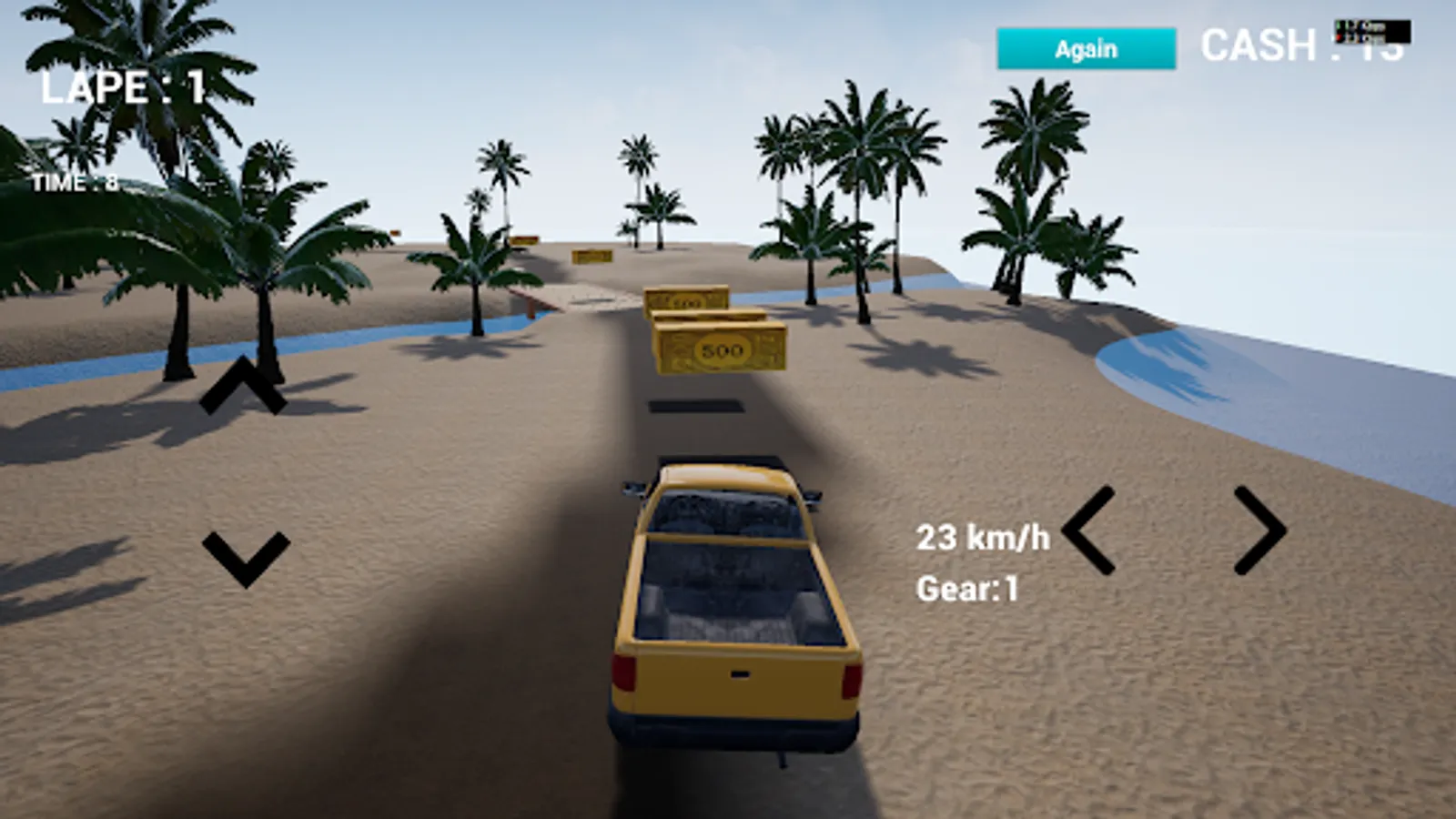 • You Find One Vehicle For Drive . The Timer will count Time and Every New Lap You get 20 times . Also Collect Money For But New Vehicle + Update Vehicle