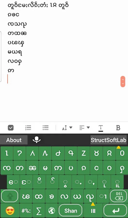 This powerful on-screen keyboard is useful to type the text in Myanmar unicode language. It include 4 primary keyboards for the English (US), German Shan and Myanmar languages.Additionally it contain another keyboards for the symbols, math symbols operators and greek character.