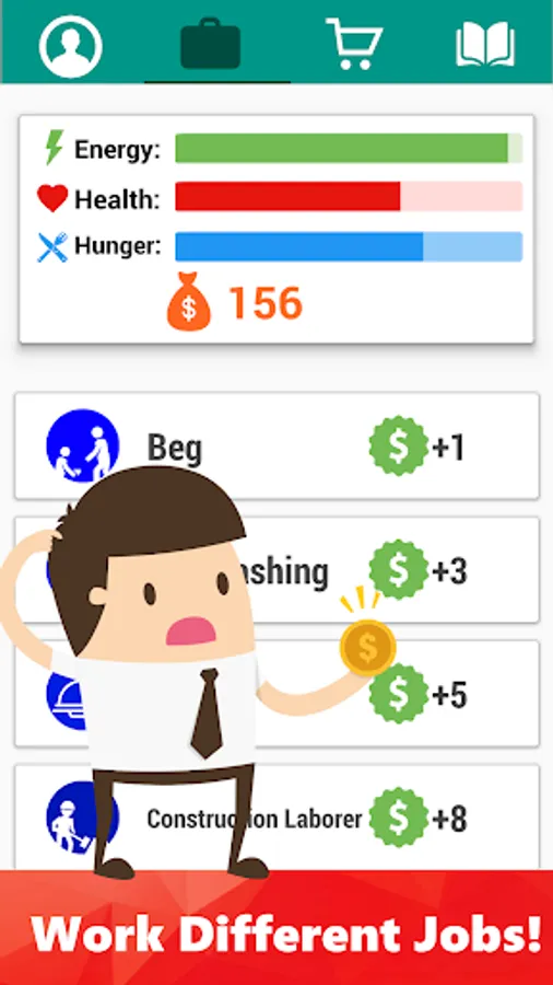 Become the richest person in the world! You will start with the lowest conditions and try to earn more and more money. The game will finishes when you became the richest person. It can be played with tapping the jobs, earning game money and be able to buy the most expensive stuff in the game. It became addictive after you develop your character!