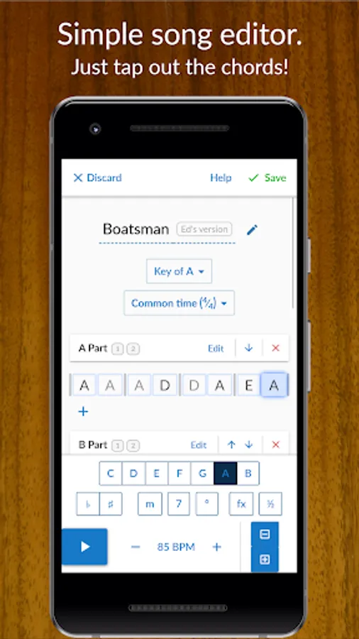 • View chord charts as letters or numbers (i.e. "1-4-5") and change the key with two taps.