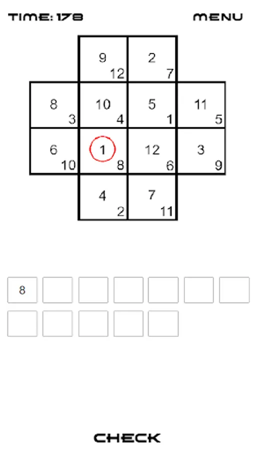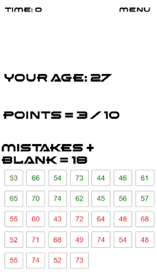 The test person's task is to search the board for numbers in the central part of the square in the order from the smallest to the largest. However, on your answer sheet, you should write the number in the lower right corner.