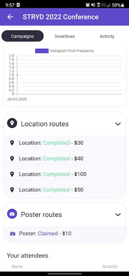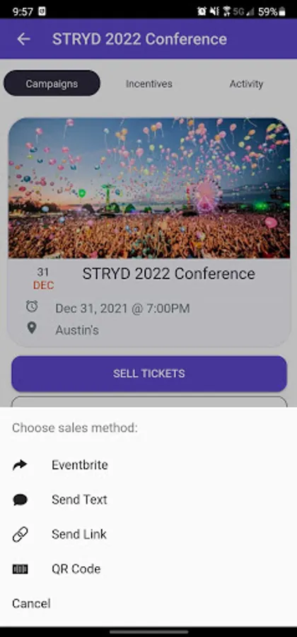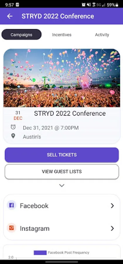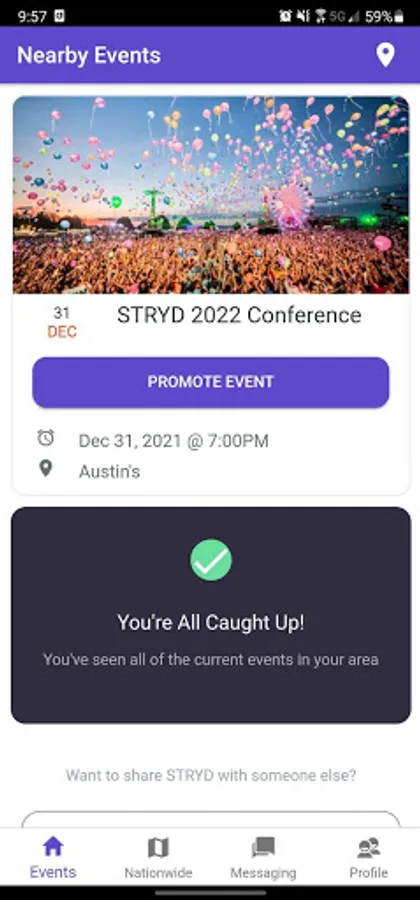 Discover events in your area, sell tickets, hang posters, distribute flyers, manage social media, get paid...all from within STRYD.
