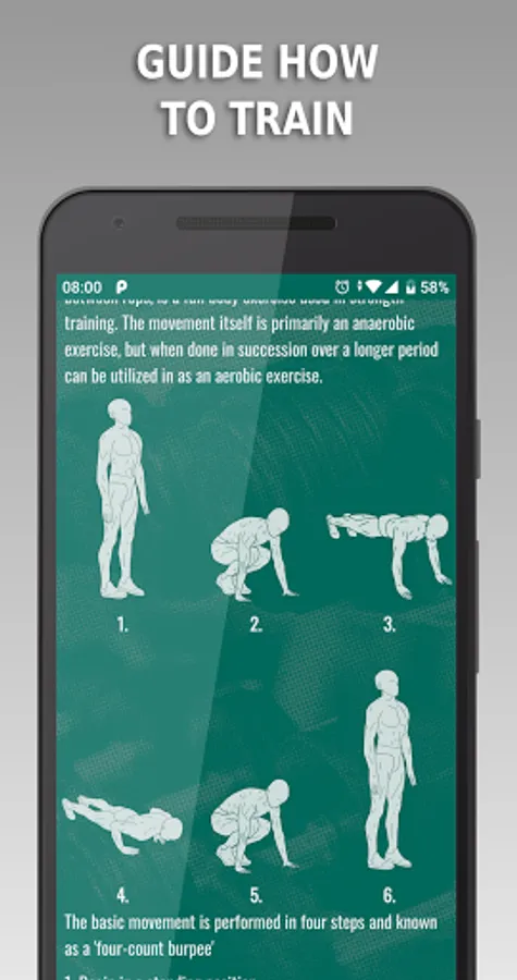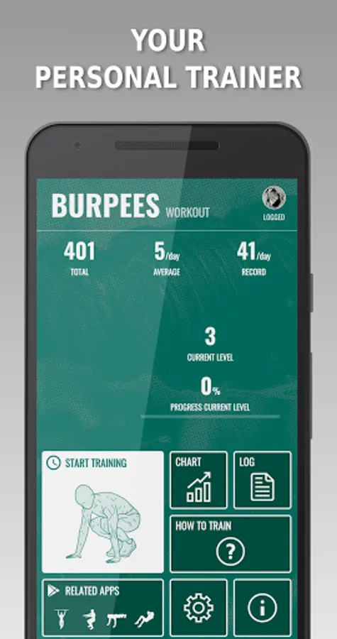 The BURPEES program is a easy and simple trainer to dynamically develop your strength and muscles by exercising the burpees.