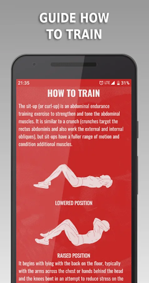The SIT UPS program is a easy and simple trainer to dynamically develop your strength and muscles by excercising the sit-ups.
