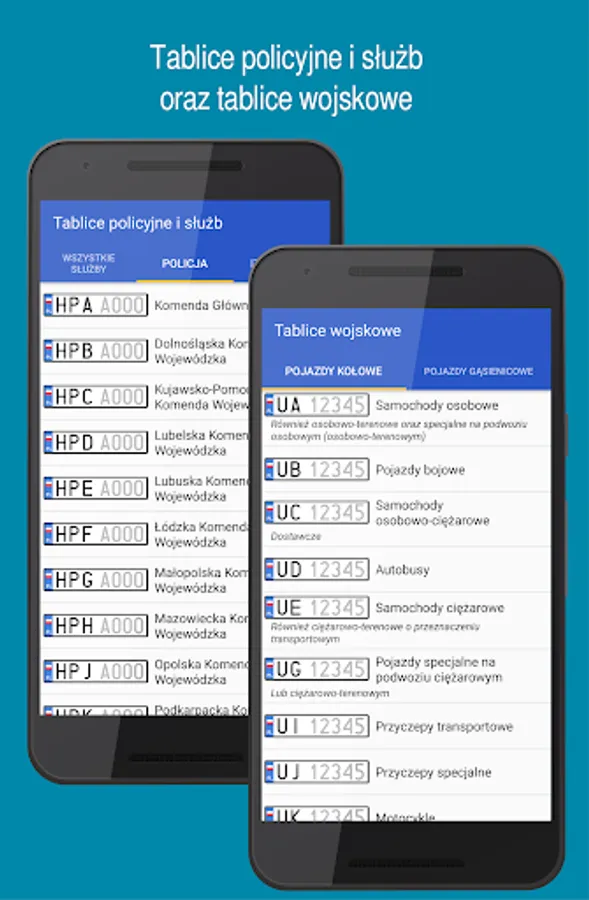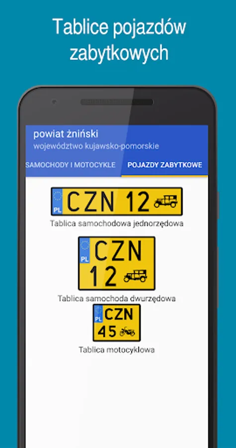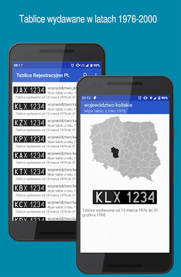 From version 1.0.6, the application also includes plates issued from 1976 to 2000 (the so-called black plates), which are still seen on our roads.