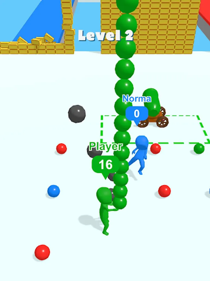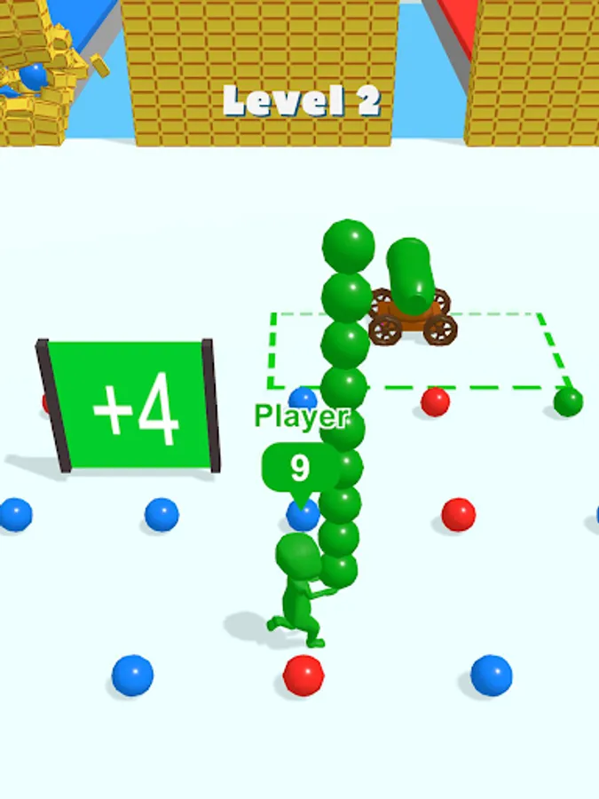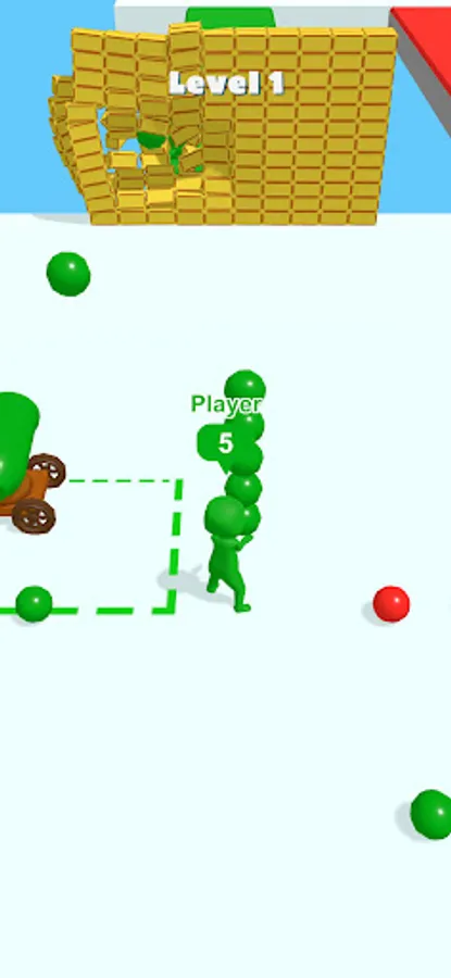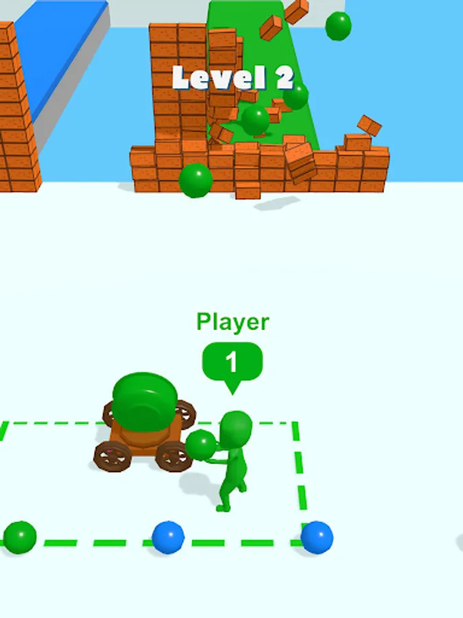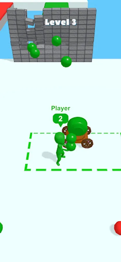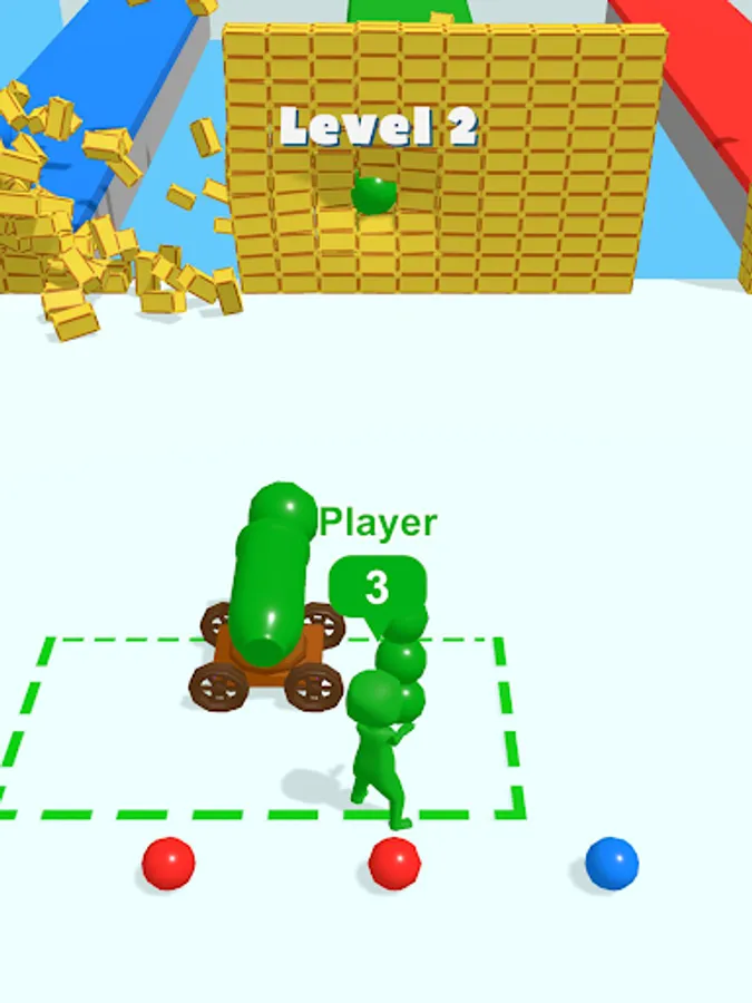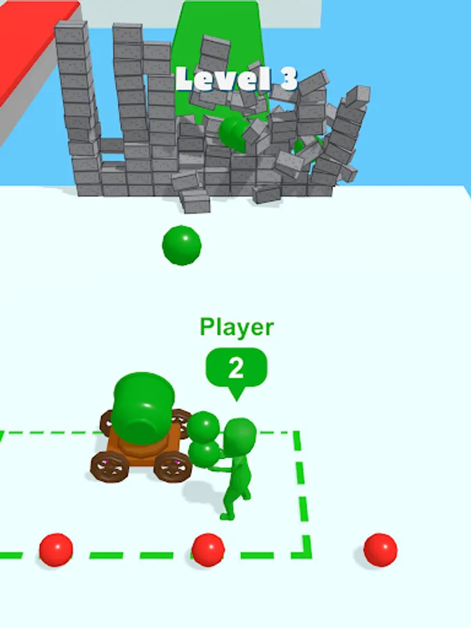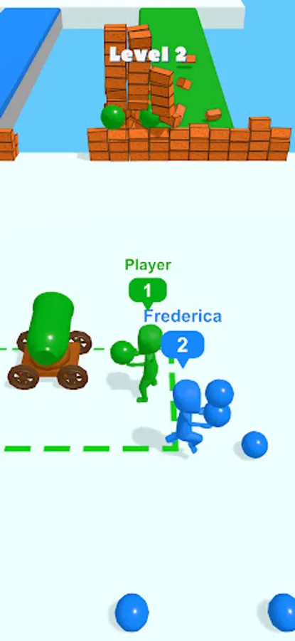 You will need to pick up shells and deliver them to the cannon, then use them to destroy the wall in front of you. However, you will encounter enemies who also have cannonballs in their hands. Take the shells from their hands and destroy the walls faster to win!