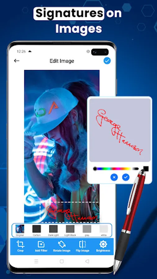 Excellent app that revolves, drags, and pinches, as well as zooms, and rotates. The feature of signing on a photo makes this signature practice app stand out. Put your own watermark and create a signature that will go viral with Photo Signature Maker.