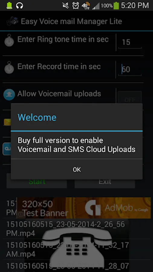 Full version includes Cloud uploads of your voice mails and SMS.
