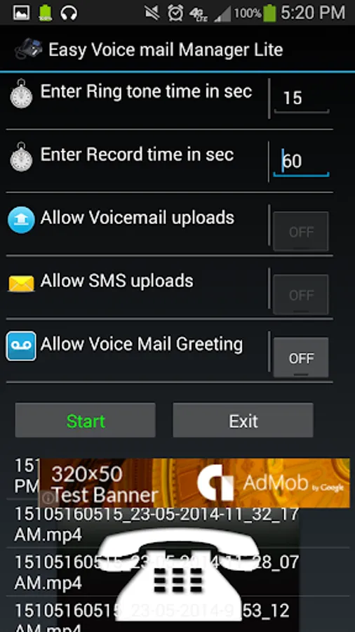 Our app can act as your voice mail box and stores your voice mails locally.You can even set the time your phone has to ring and the time to record your caller's voice mail.Voice mails would be stored with number and date on a folder called EasyIVRRecordings. You can even listen to those voice mails from the app.