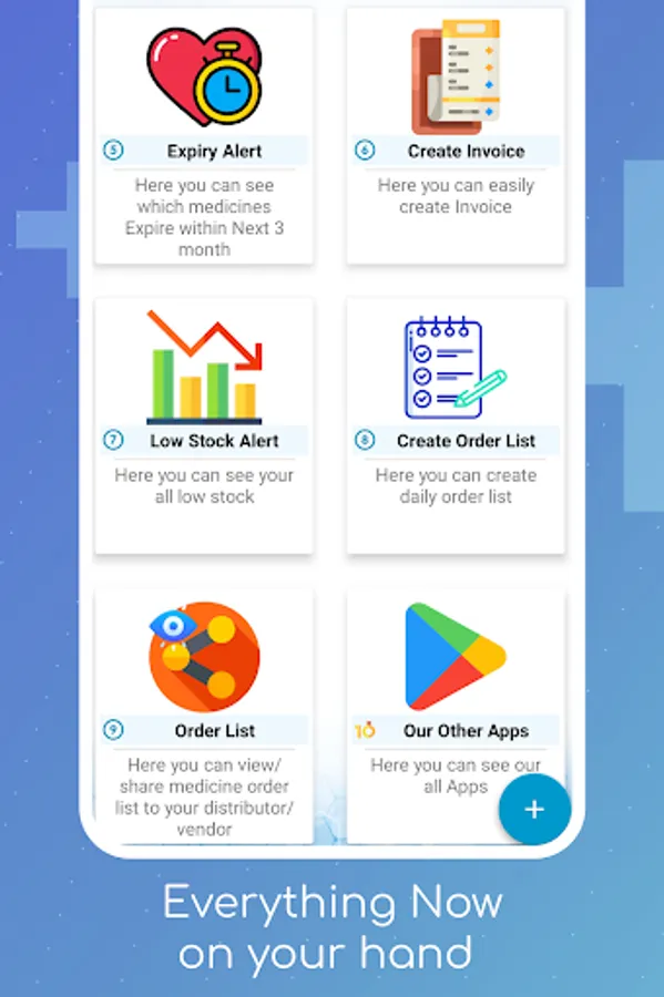 Medicine Stockist is an application works in pharmacy to control and manage pharmacy business ,its have many modules like Manage Stock & Inventory,Manage Sale,Expiry Alert,Advanced Medicine Search by Name which help to Manage Stock and Sale Quickly,provide Stock & Sale In Hand Report,provide Low Stock Report, Add Daily Medicine Wanting Features and Share to your Distributor,In Build Whatsup Support,Easy Backup & Restore.