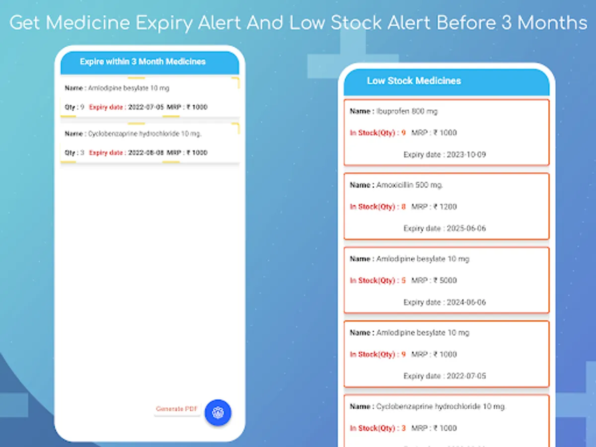 You can get the medicine expiry and low stock notification.