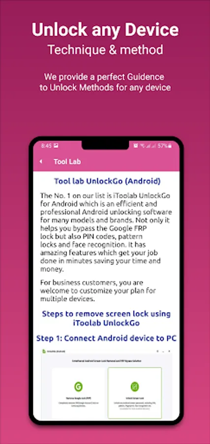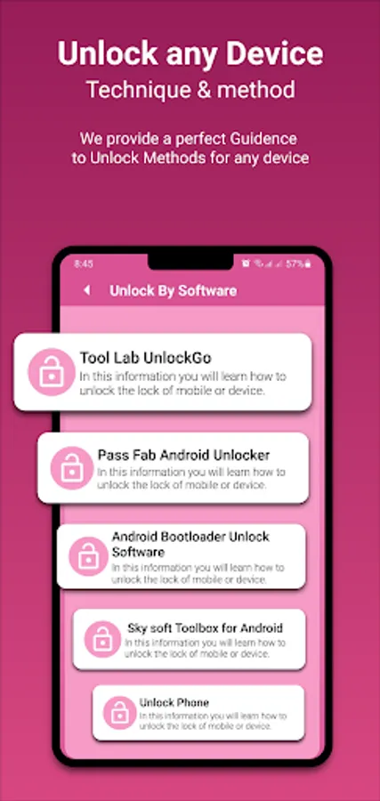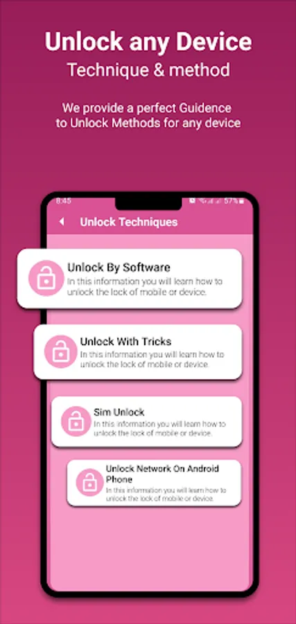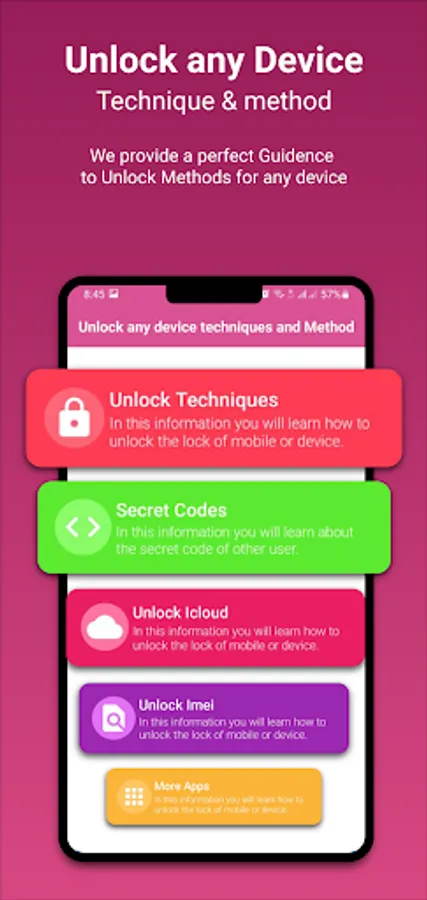 The Main feature is unlocking the lock on any device and imei checker device unlock