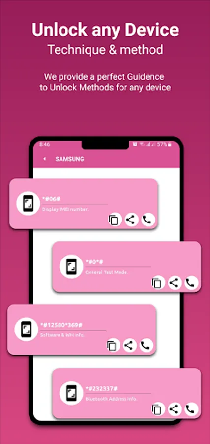unlock any device techniques and all Mobiles Secret Codes including the Android secret code of all mobile brand devices for shortcut functions of the phone like BlackBerry, China, Acer, Techno, Vivo, Samsung, Sony, Lenovo, Sony Ericson, Motorola, BlackBerry phone model, China, Acer, Techno, Vivo, Realme phone, Oppo, Infinix, ZTE, HTC and much more secret code for android phones.