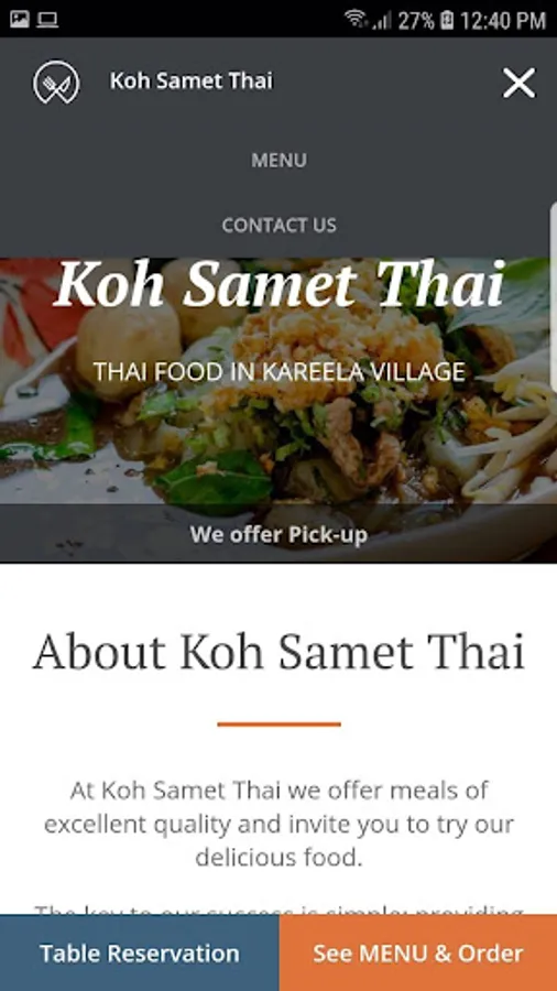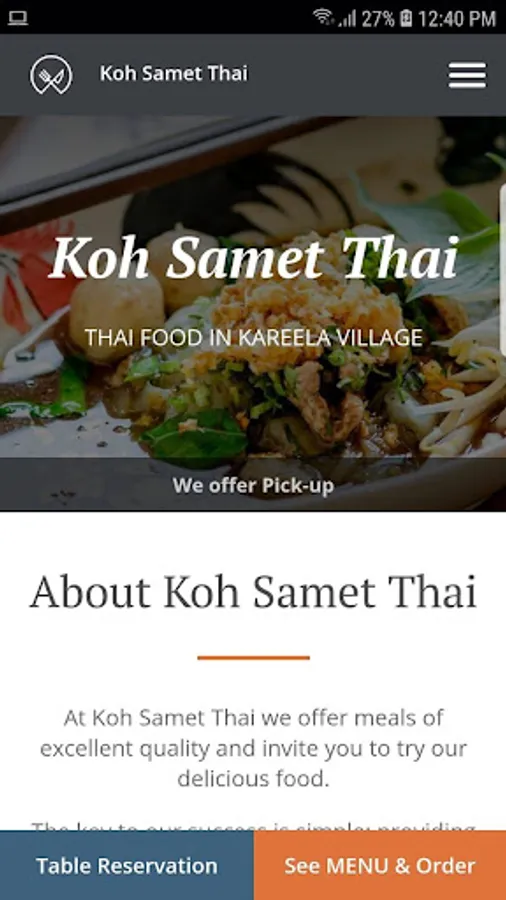At KOH SAMET THAI we offer meals of excellent quality and invite you to try our delicious food. The key to our success is simple: providing quality consistent food that taste great every single time. We pride ourselves on serving our customers delicious genuine dishes like: Thai Eat delicious food. Grab a drink. But most of all, relax! We thank you from the bottom of our hearts for your continued support.
