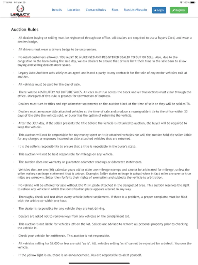 At Legacy Auto Auction we strive to bring back the days when you could go to a sale buy or sell quality inventory without all the hassle and fees you get at larger auctions. We offer new technology with the old school mentality, where hand shakes and respect meant something. Real condition reports you can trust offered by our 3rd party vendor r8tr. An accurate condition report with detailed photos, notes, and a scoring system dealers can understand.