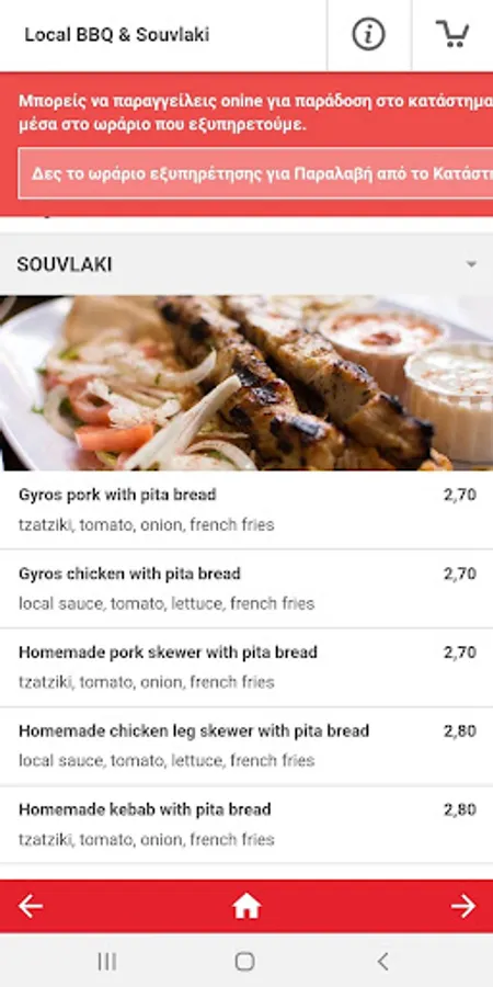 While Mykonos offers a variety of cuisine services for its local people and tourists, there is definitely no excuse not to taste the traditional Greek “souvlaki”. Meat combined with a traditionally made “pita” and other ingredients such as tomato, fries and “tzatziki” is the most famous Greek street food, and the easiest way to have a healthy and tasteful meal while on holiday or an ordinary day in Mykonos! Our restaurant, offers to you fresh and healthy ingredients and also fast and reliable service! Local was founded a year ago, and is already one of the hot spots of Mykonos, considering the street food cuisine. Also you can find a variety of barbeque, Mediterranean and Greek plates. Each and every of our products comes from local producers, because we value our quality more than any other aspect in our work. Our restaurant is located at Argirena, only 800 meters from Mykonos Town. We also offer delivery services to every place in Mykonos, free Parking area and also easy access since we are based near the main road of Mykonos towards the town. Do not miss the chance to pass by and taste our menu or order from your hotel!