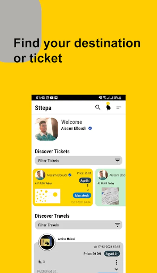 In sttepa app if I couldn’t find what I’m looking for from travels or tickets, we added reminder is a tool makes add your original city and arrival city, or only original city, and she will reminds you if someone has added travel o ticket match you alert,
