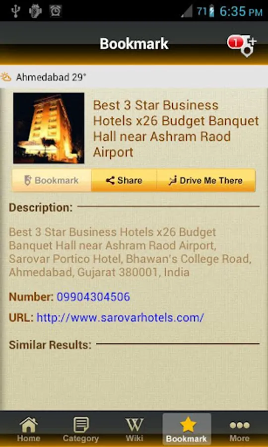 The application comes with Bookmark management, thus giving you option to save your favorite locations for quick retrieval in offline mode! It is also backpacked with the real-time Augmented Reality (AR) feature which offers an interactive way to search and find nearby locations around you. It uses the phone's camera to display real time search results.
