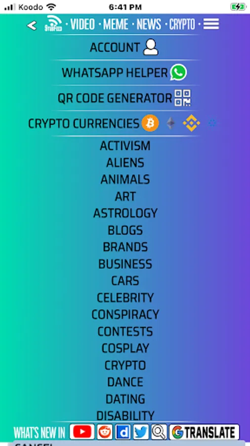 Activism / Human Rights • Aliens, UFO • Animals • Art • Astrology • Blogs • Brands • Business • Cars / Automobile • Celebrity • Conspiracy • Contests • Cosplay • Crypto Currencies • Dance • Dating • Disability • Economy • Education • Entertainment • Esoteric • Events • Fashion • Food • Funny • Gadgets • Gaming • Health • How To • Inspirational • Jobs • Kids • Life • Manga • Movies / Films • Music • News • Photography • Places • Politics • Public Figures • Quotes • Science • Shopping • Shows • Software • Sports • Style • Talents • Tattoos • Technology • Television • Travel • Trending • Videos • Wedding