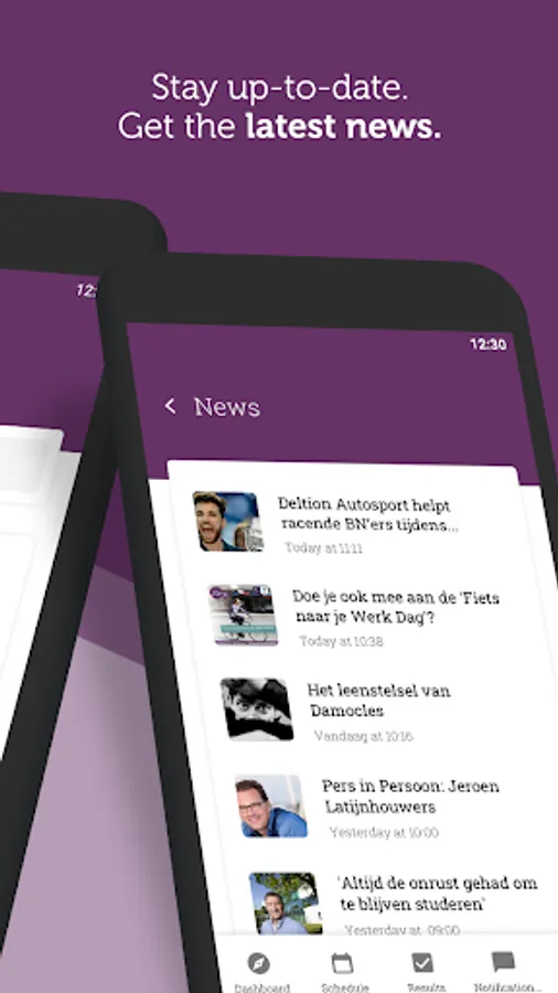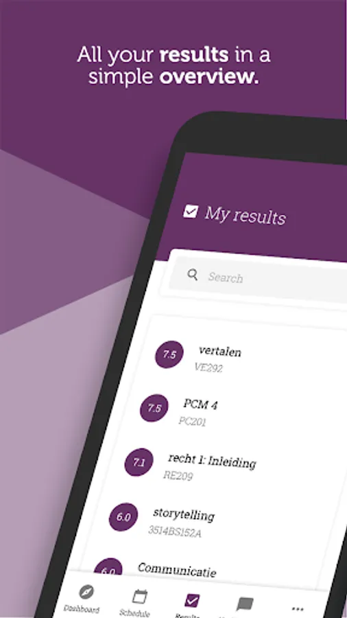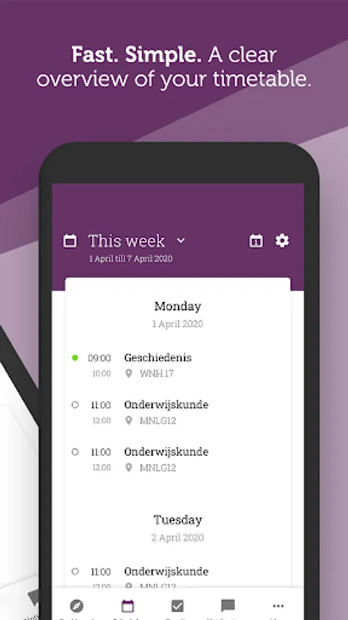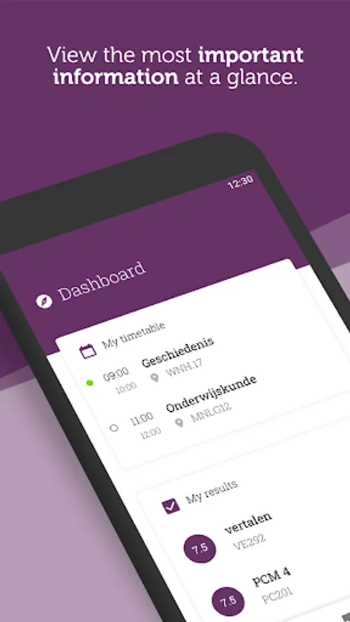 With the MyFontys app you always have access to your personal schedule, results and the latest news. These features are integrated in one app and accessible within two clicks.