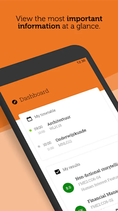 Checking your personal timetable, study results and news of the Breda University of Applied Sciences has never been this easy! Two taps are needed to examine all the information you need.