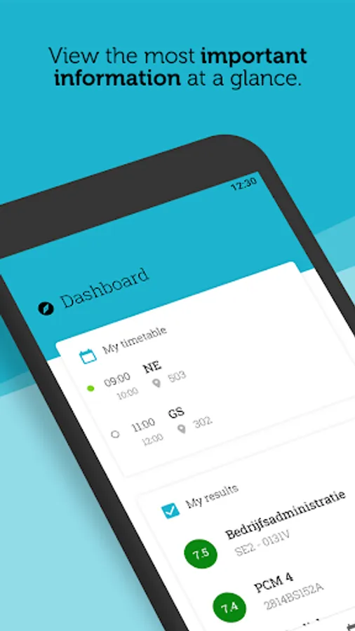 The MyStuComm StudentsApp offers a number of features that are of an informative nature for students. Information such as time tables, study results and study progress can all be checked effortlessly in the app.