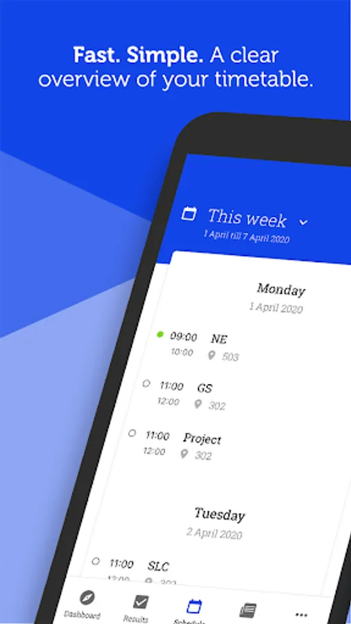 MyTio allows you to easily consult your grades and your course and exam schedules. Here, you will find the course names for your courses and exams, the start times of your classes, the names of your lecturers and the classrooms where you need to be.