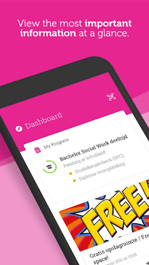 Have you applied to a study programme at Inholland? Then make sure you download the MyStart-app. This app gives you access to all useful information concerning your enrolment and the start of your study programme.